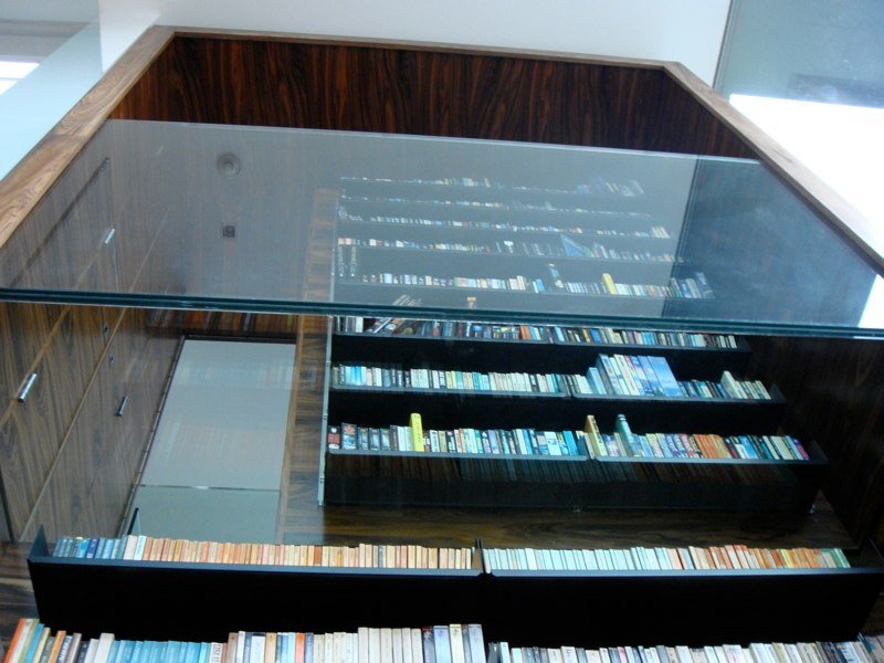 My client had a very specific and simple request, he wanted 40 linear metres of shelf space that had a footprint of no more than 2.88sq metres and had to maintain all of the natural light.